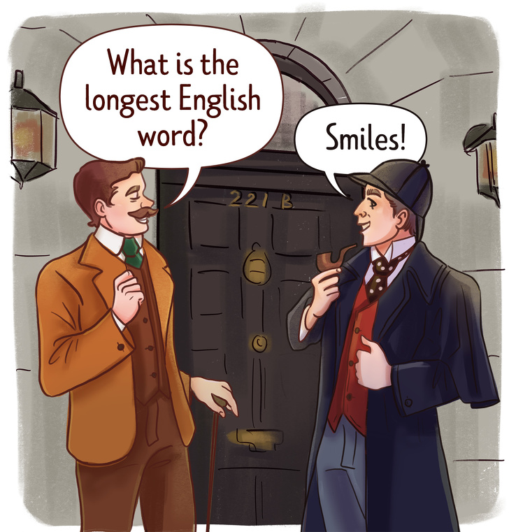 У слові smiles заховано mile, що англійською означає «миля». Виходить, smiles — найдовше слово, тому що воно ніби довжиною в милю. Жарт оцінять любителі каламбурів, правда, якщо вони говорять по-англійськи.