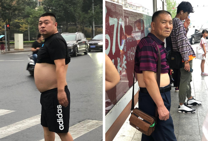 Коли в Китаї починається літо, китайські чоловіки без сорому оголюють животи. Вікових обмежень немає — так роблять і старші, і молоді люди. Річна чоловіча мода отримала оригінальна назва «пекінське бікіні» і поширилася не тільки в Пекіні, але і по всій країні. І на те є 3 причини. По-перше, китайці вважають, що таким чином тіло «дихає». По-друге, демонструючи дебелий торс, вони повідомляють оточуючим, що можуть забезпечити себе «гідним» кількістю калорій.