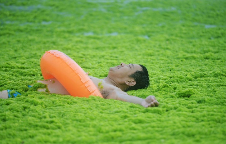 Місто Циндао омивається Жовтим морем. З настанням літньої пори вся берегова лінія покривається зеленими водоростями. Місцева влада кожен рік намагаються боротися з ними, але поки безуспішно. Але для китайців це не перешкода, рятуючись від спеки, вони не проти викупатися в зеленій рідині.