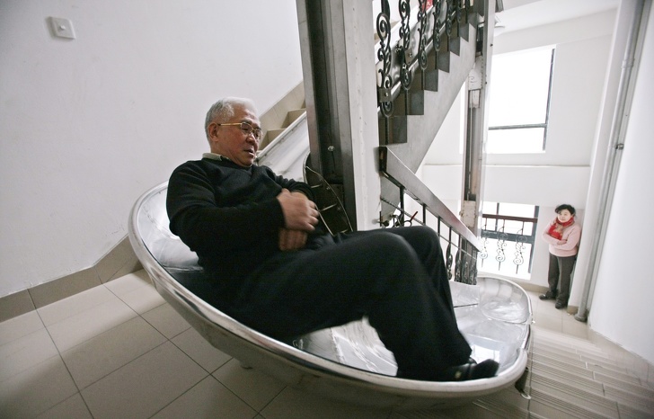 При всій його дивовижності це дуже корисний винахід. Винахідник Чжоу Мяоронг придумав аварійну гірку, яка допомагає оперативно покинути будівлю у разі надзвичайної ситуації. Наприклад, щоб спуститися з 5-го поверху, знадобиться всього 14 секунд.