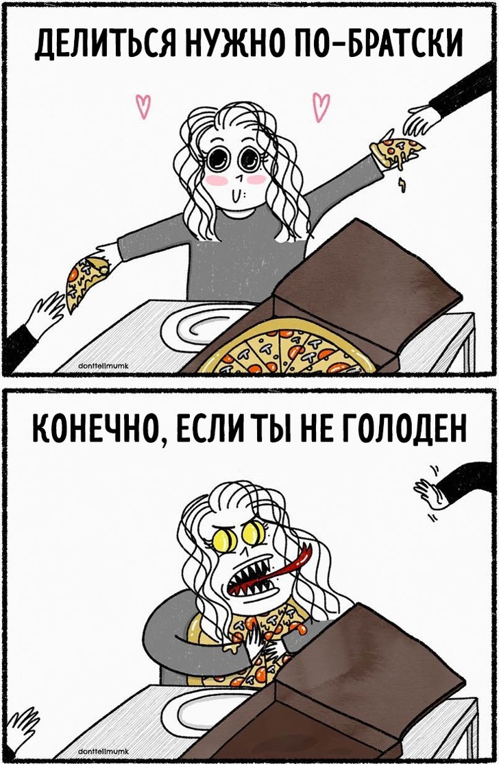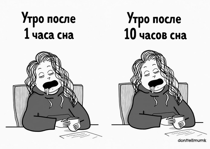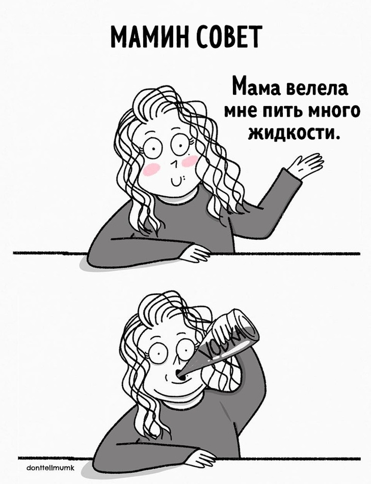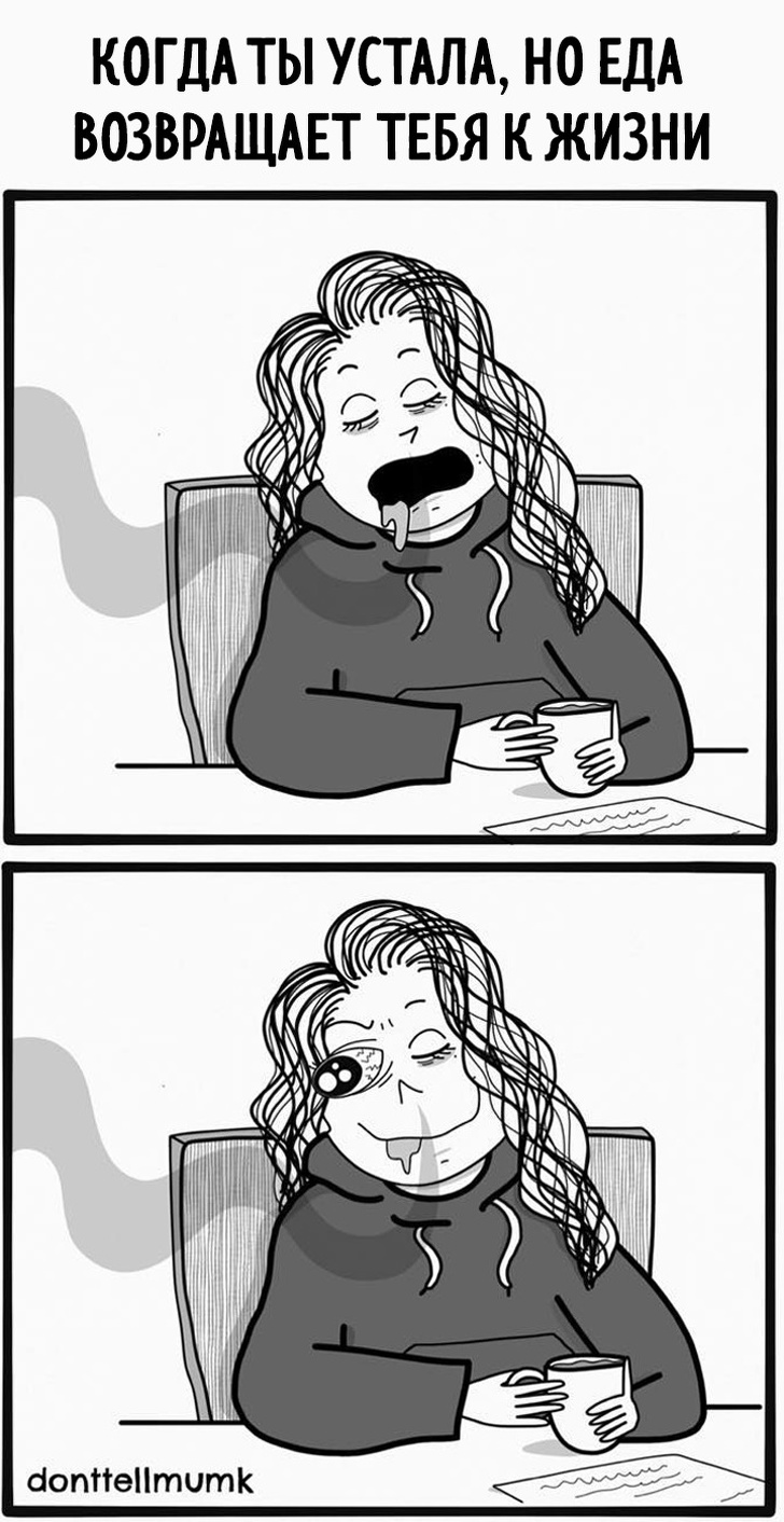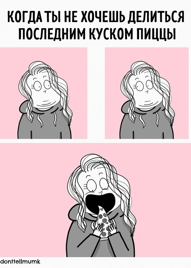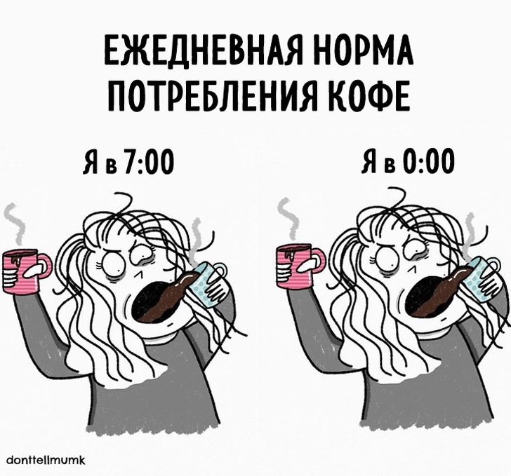 Художниця, відома під псевдонімом Donttellmumk або Rafaella, живе на Кіпрі, малює комікси про життя і викладає їх в інтернеті. Дівчина поділилася з нами, що завела сторінку в инстаграме, як-то раз пожартувавши про це зі своїми домочадцями. Однак виявилося, що не одна вона всією душею ненавидить ранні підйоми і не уявляє життя без кави. Її роботи швидко стали набирати сотні, а потім і тисячі лайків: передплатники розсмакували стиль художниці і її здатність підмічати смішні речі в щоденній рутині.