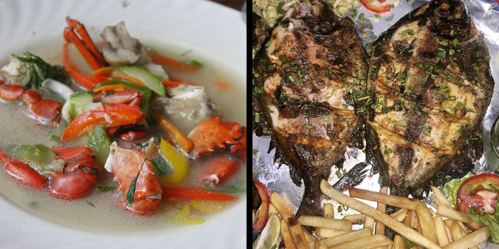 Деякі ресторани (наприклад в Арамоле або Палолемі) вечорами виносять на пляж холодильники зі свіжою рибою. Ви можете вибрати ту, що сподобалася, і замовити її. Спробуйте акулу: у неї ніжне м'ясо і практично немає кісток. Багато ресторанів подають King Fish: у всіх готове блюдо виглядає по-різному, але в будь-якому випадку буде смачно. Чудовий (і очевидний) вибір — страви з морепродуктами: рис, локшина або супи. А в Sri подають відмінний крабовий суп.