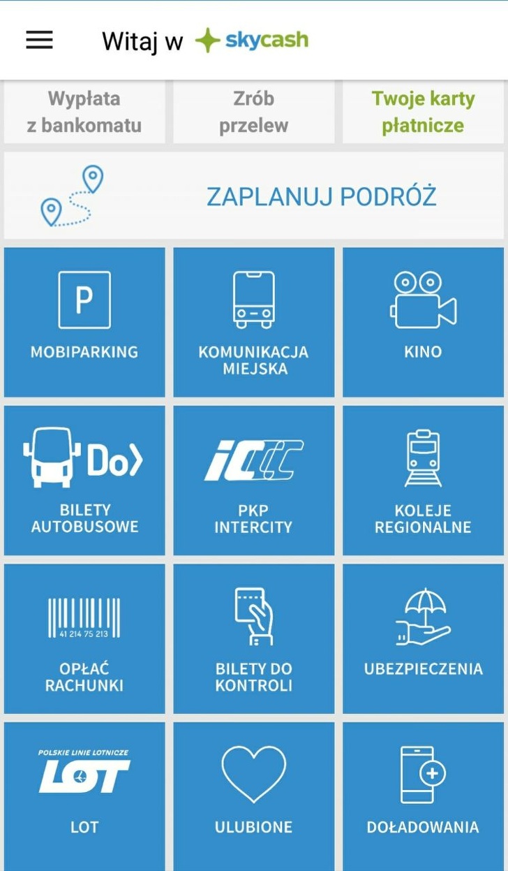 - Додаток SkyCash. Через SkyCash можна придбати електронні квитки на міський громадський транспорт, а також на автобуси та поїзди всередині країни. Тобто при посадці в трамвай вам не потрібно буде користуватися автоматом і компостером: ви купите квиток у додатку, де він буде зберігатися протягом заданого часу.