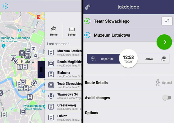 - Додаток Jakdojade показує роботу міського та приміського транспорту. Воно підкаже, на яку зупинку вам потрібно піти, коли туди приїде потрібний трамвай і скільки часу ви будете в дорозі. Тут є всі подробиці, що стосуються вашого переміщення всередині будь-якого відносно великого міста Польщі, де є громадський транспорт. Додаток англійською, так що з польською мовою взаємодія буде мінімальним.