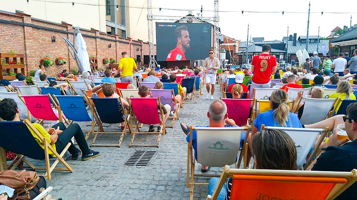 У літній час деякі торгові центри або великі ресторани організовують перегляд футбольних матчів. Прийти може будь-хто.