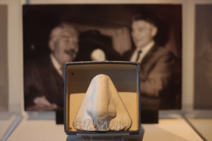 Це зліпок носа засновника «академії» Хассе Альфредсона на тлі фотографії самого Хассе, який дивиться на зліпок свого носа. Такі справи.