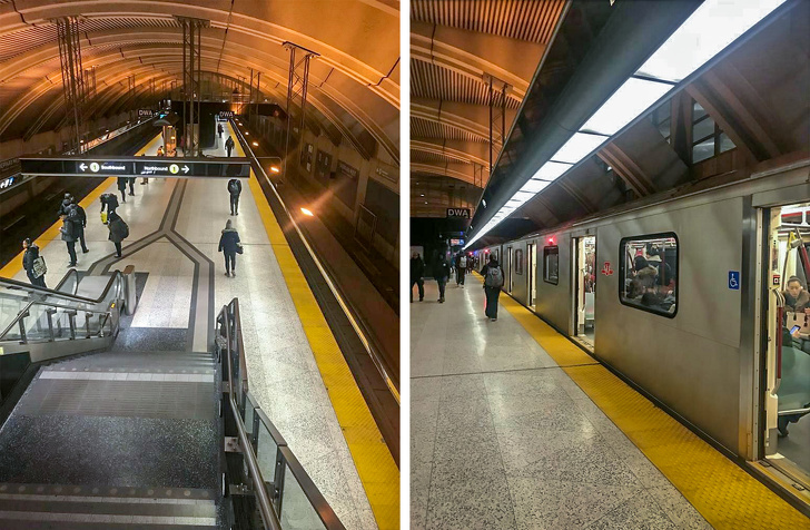- Метро в Торонто зовсім не схоже на монументальні і розкішні споруди. Для канадців головне — практичність, а не краса. Крім того, метро проходить досить неглибоко під землею, і чим далі від центру, тим більше наземних ділянок.