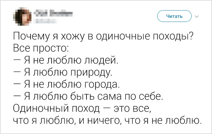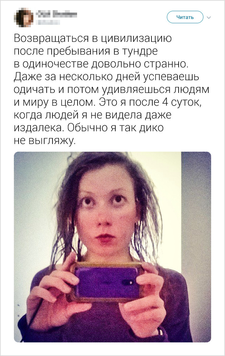 Похід — це не тільки захоплююче пригода, але і випробування для всього організму. Ми звикли, що про таке хобі можуть розповідати сильні чоловіки, а не тендітні дівчата. Але користувачка твіттера під ніком OLA Dration не залишає від стереотипів і сліду. При зростанні в 150 сантиметрів вона важить 40 кілограмів і ходить в автономні поодинокі походи по скандинавському Заполяр'ї.