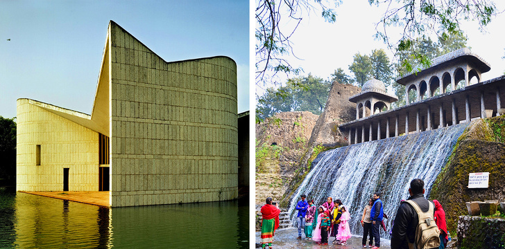 При будівництві позиціонувався як місто-символ нової, незалежної Індії. Над планом міста в різний час працювали архітектори Альберт Майєр, Мацей Новіцкі і Шарль-Едуар Жаннере-Грі, більш відомий як Ле Корбюзьє.