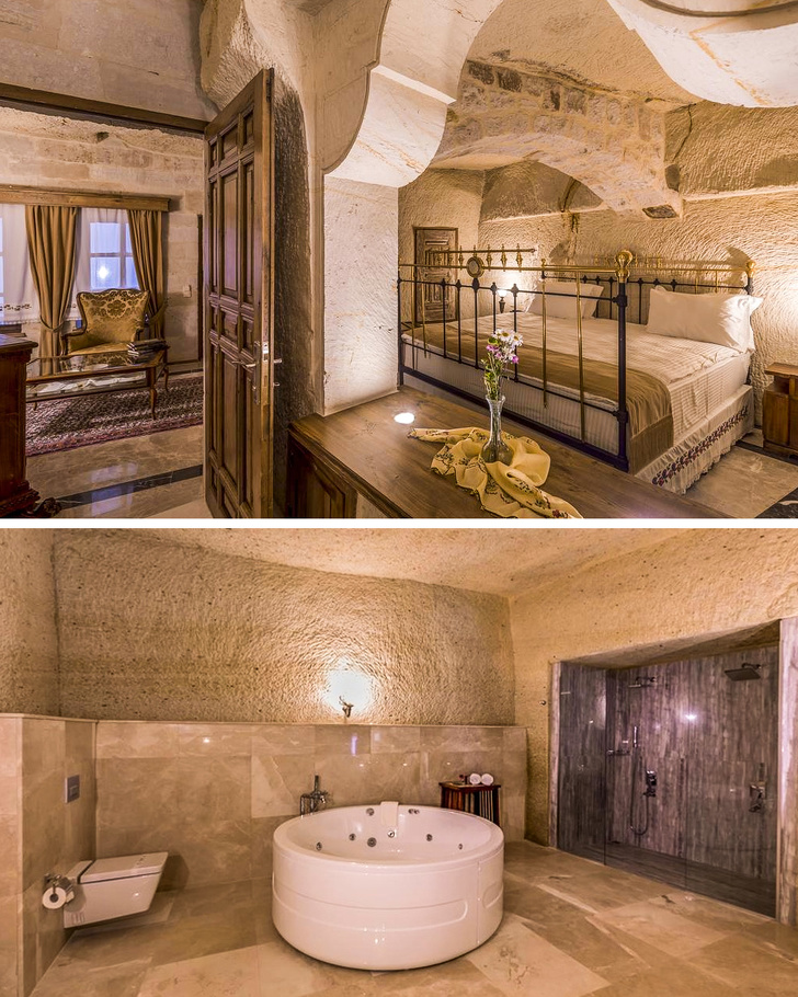Антикварні меблі і джакузі в печері. Туреччина, готель Hanedan Cave Suites (люкс € 640/добу)