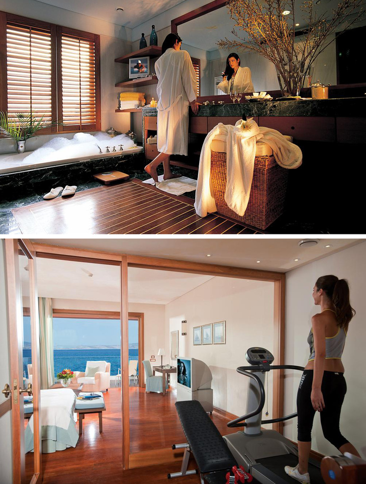 Ванна з мармуровою обробкою і особисті тренажери. Греція, готель Grand Resort Lagonissi (суперлюкс € 607/добу)