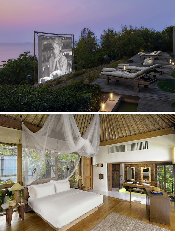 Кінотеатр на відкритому повітрі з лежаками і видом на Сіамську затоку. Таїланд, готель Six Senses Samui (вілла від € 543/добу)