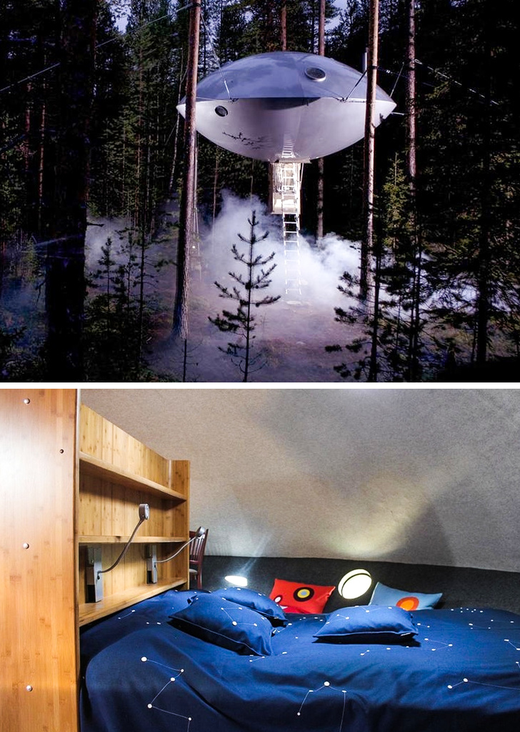 Номер у вигляді літаючої тарілки. Швеція, готель Treehotel (€ 396/добу)