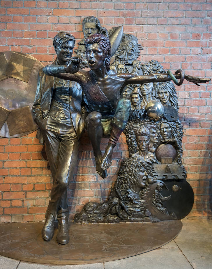 Статуя співаючого Девіда Боуї в Ейлсбері (Великобританія). Її виконав скульптор Ендрю Сінклер (Andrew Sinclair)