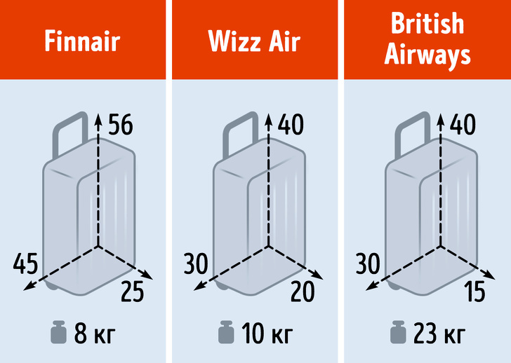 Деколи збір валіз — це ціле мистецтво. Адже потрібно не тільки взяти саме необхідне, але і вмістити все це в ручну поклажу і валізу, не перевищити норми їх ваги в аеропорту і не переплачувати зайві гроші. Приміром, мінімальна вага ручної поклажі коливається від 5 до 23 кг в залежності від стандартів авіакомпанії. Також необхідно заздалегідь уточнити, чи всі речі і продукти можна перевозити через кордон. Так, не можна брати в ручну поклажу маленькі ножиці, моноколеса, гироскутеры.