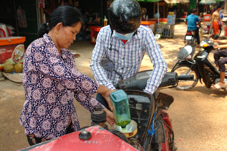 2. Ні, в Камбоджі не заправляють мопеди алкоголем, просто саме так тут виглядає «бензоколонка»