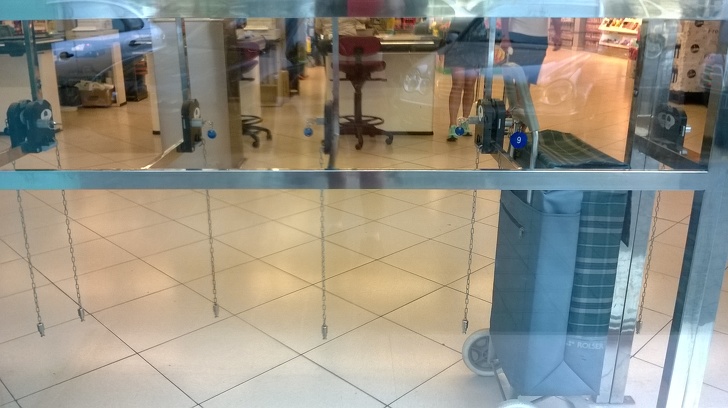 7. Так виглядає «парковка» для валіз в іспанських супермаркетах. Місцеві жінки ходять за покупками тільки так