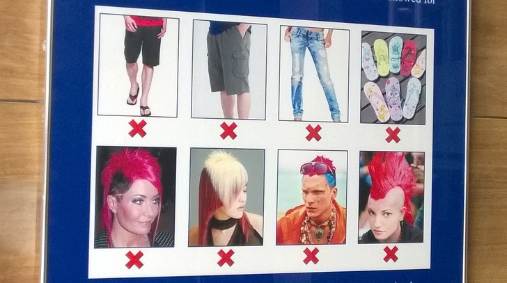 18. Перед входом у малайзійський коледж висить чітка інструкція, що замінює «фейсконтроль»