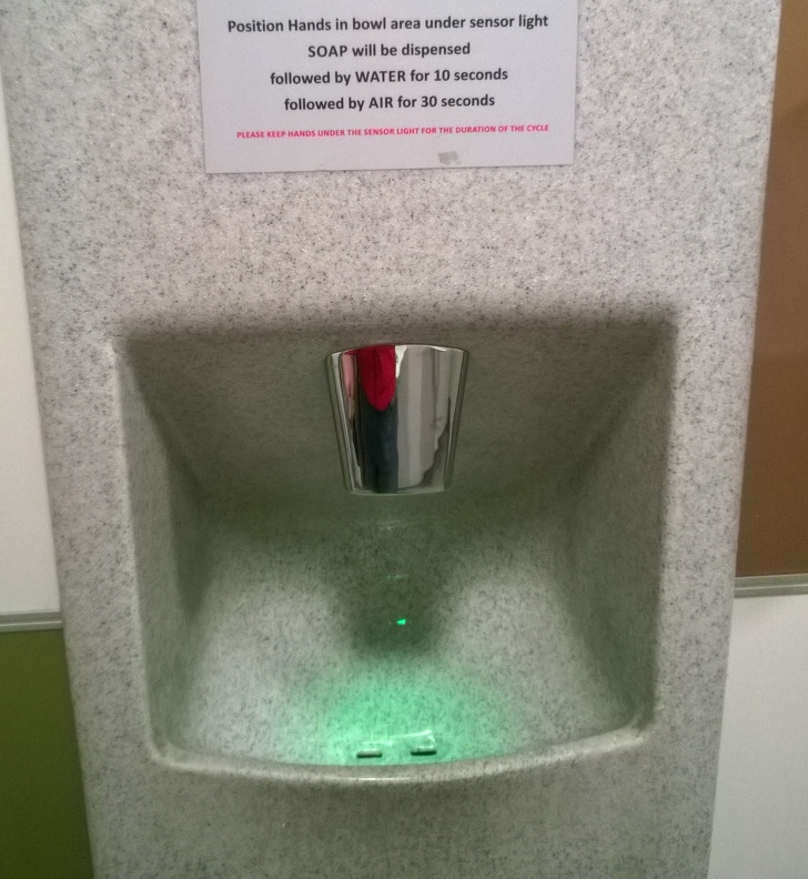 19. Екологічний умивальник в Новій Зеландії: спочатку порція мила, потім трохи води і потім автоматична сушарка для рук