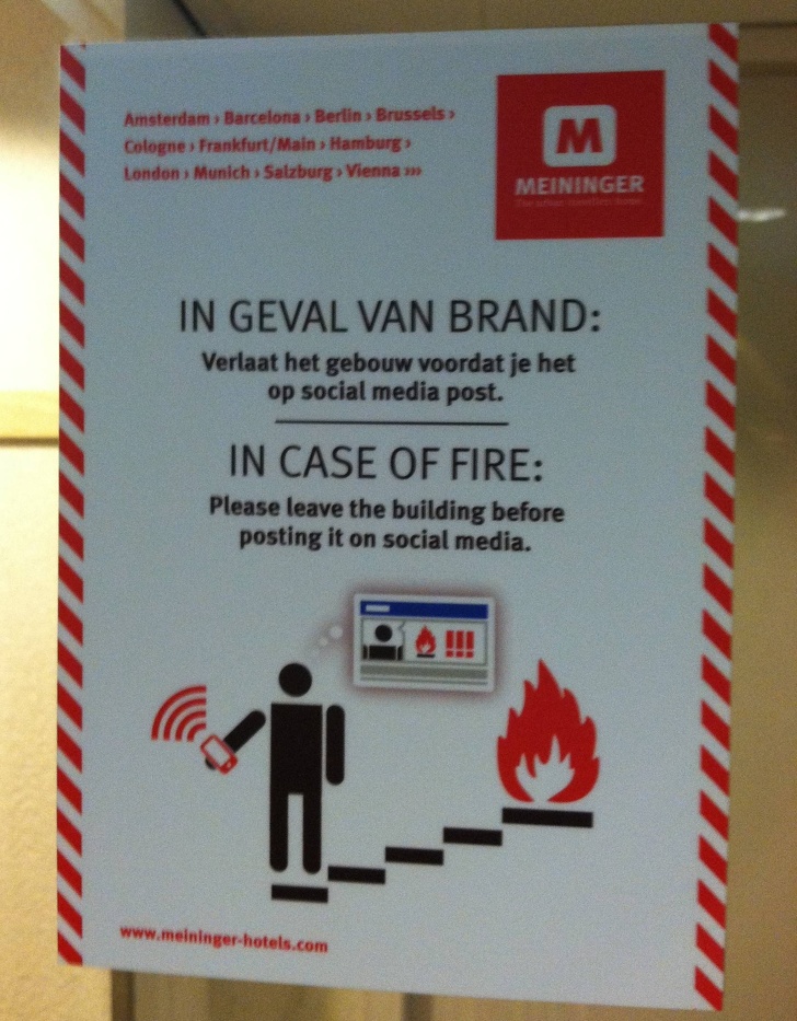 «У разі пожежі, будь ласка, залиште будівлю, перш ніж постити знімки в соціальні мережі».