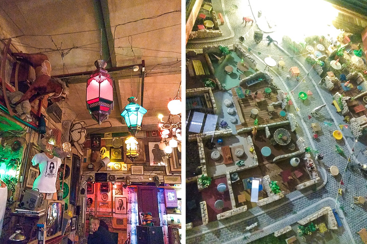 Ми встали на зупинці, яка була ближче всього до Szimpla kert одному з найперших і легендарних руїн-пабів в Будапешті. Ці паби будувалися в закинутих будівлях із-за дешевизни, а зараз стали національним надбанням і виглядають дуже епатажно. Szimpla був величезний (праворуч на фото — міні-карта, і це тільки перший поверх). Вільних місць не виявилося, але можна було ходити по всіх залах і оглядатися.