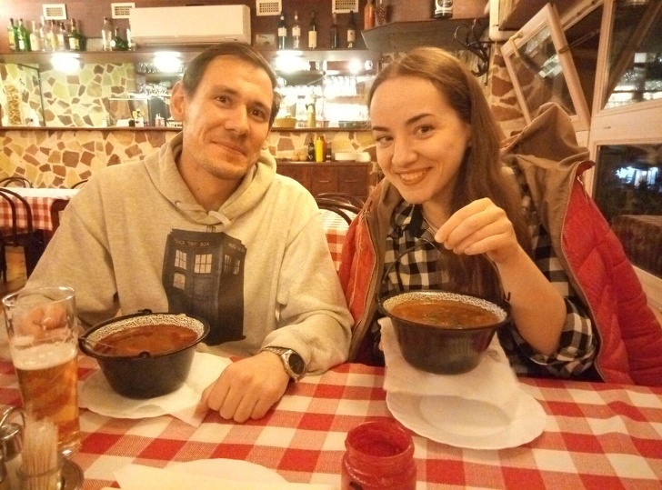 Офіціантами були китаєць і італійка. Часом вони не розуміли нас англійською, і ми спілкувалися через «Гугл-перекладач». Порцію курки в соєвому соусі з рисом ми з чоловіком замовили на двох на пробу. І не даремно! Все це ми ледве доїли. Всі порції в Угорщині такі величезні, що хоча б для перевірки спочатку беріть одну на двох.