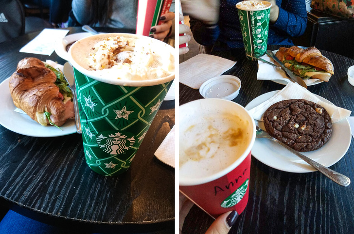 - Кава, круасан і шоколадне печиво в Starbucks — 3 180 форинтів / € 10