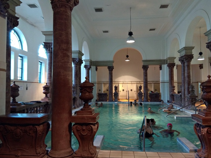 Вранці 4-го дня ми вирушили в купальні «Сечені». Вони вважаються найбільш популярними, але можна вибрати з безлічі інших (до речі, купальні Лукаша можна відвідати безкоштовно, якщо купувати Budapest Card. Ми порівняли різні купальні і зупинили вибір все-таки на «Сечені» — вони найбільш відвідувані, в них більше басейнів і більш цікаве оформлення. А так виглядають купальні Лукаша: