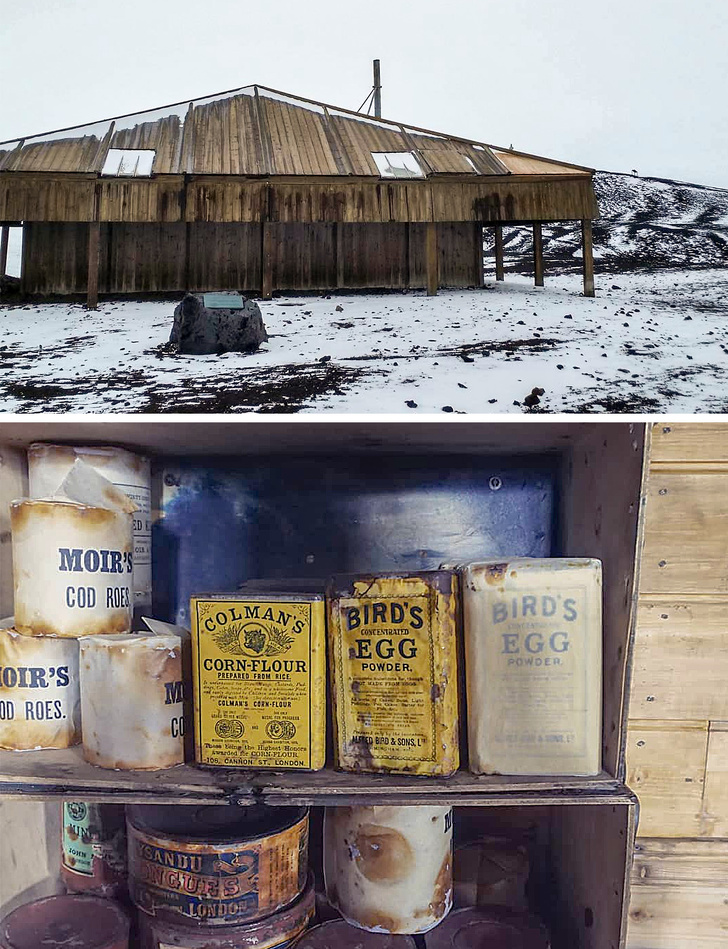 У 1911 році до Південного полюса вирушили 2 експедиції. Обидві вони досягли мети, але назад повернулася тільки команда Руаля Амундсена. Роберт Скотт та його товариші загинули на зворотному шляху, а одна з їхніх баз тепер відкрита для відвідувачів. Мороз зберіг всі речі аж до їжі.