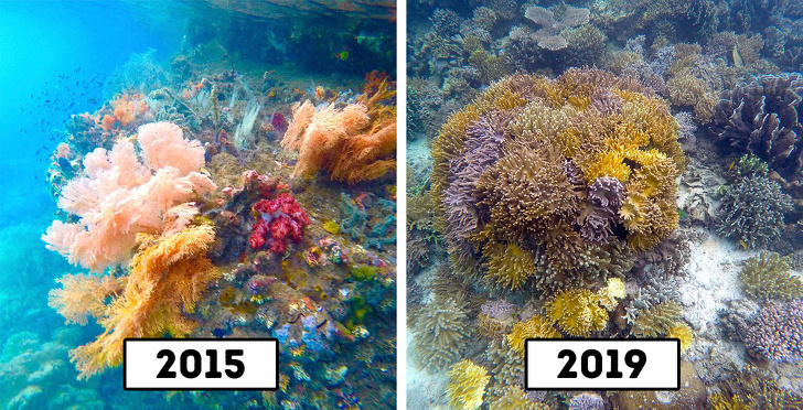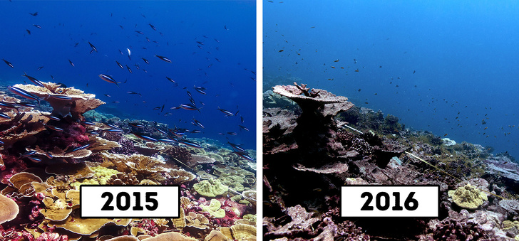 Всього за 10 місяців кораловий риф був знищений більш ніж на 90 %. Деякі корали потьмяніли, інші загинули. Виною тому тепловий стрес, викликаний кліматичними змінами.