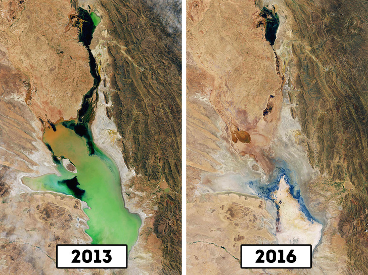 Озеро повністю пересохло в 2016 році у зв'язку з кліматичними змінами, а також розвитком сільського господарства та видобутком корисних копалин. Примітно, що це друге зникнення озера. Вперше воно пересохло в 1994 році. Потім, завдяки дощам, знову наповнилося водою.