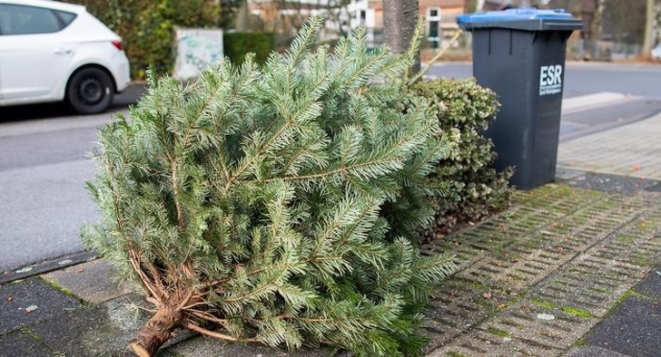Різдвяні ялинки в Німеччині починають викидати вже 1 січня. Їх акуратно складають на тротуарах, звідки дорожні служби забирають тих на переробку. Виносити ялинки потрібно без прикрас і в певні дні. За дерево, яке утилізували не за правилами, порушникові загрожує штраф.