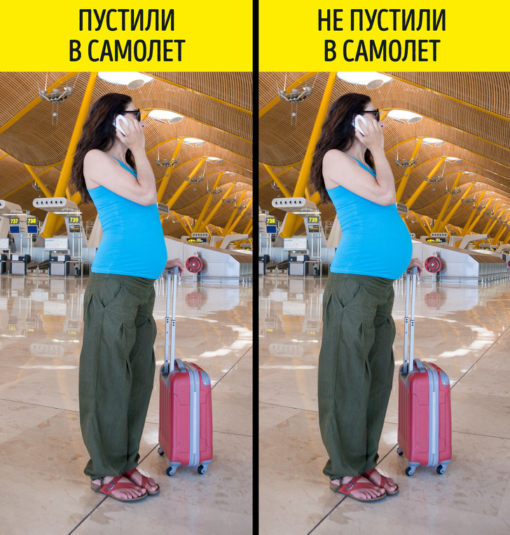 Основні заборони знаходження на борту стосуються пізніх термінів вагітності (вас можуть попросити надати довідку від лікаря, щоб зняти з себе відповідальність) і гострих респіраторних захворювань, коли пасажир явно може становити загрозу для інших, а також отримати серйозні ускладнення умов польоту. Можуть відмовити в посадці і людині з надмірною вагою, якщо він не купив два квитки. Ці правила стосуються комфорту інших пасажирів. При важких формах інвалідності людини також можуть не пустити на борт, якщо у літаку немає спеціальних умов для нього.