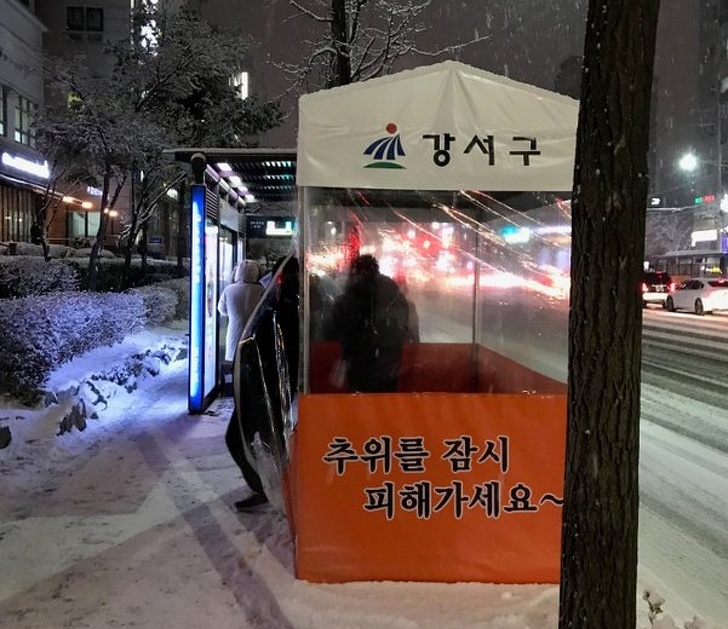 Укриття на зупинці, яке захищає від холодного зимового вітру