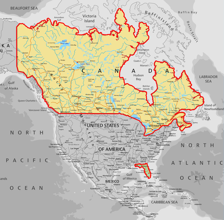 9. Населення Канади менше населення американського штату Флорида