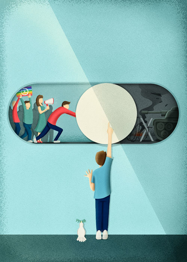Серія ілюстрацій для VO+ Magazine про новому поколінні, їх цінності та речі, які їх турбують. Тематика ілюстрацій — соціальні мережі, проблеми клімату,