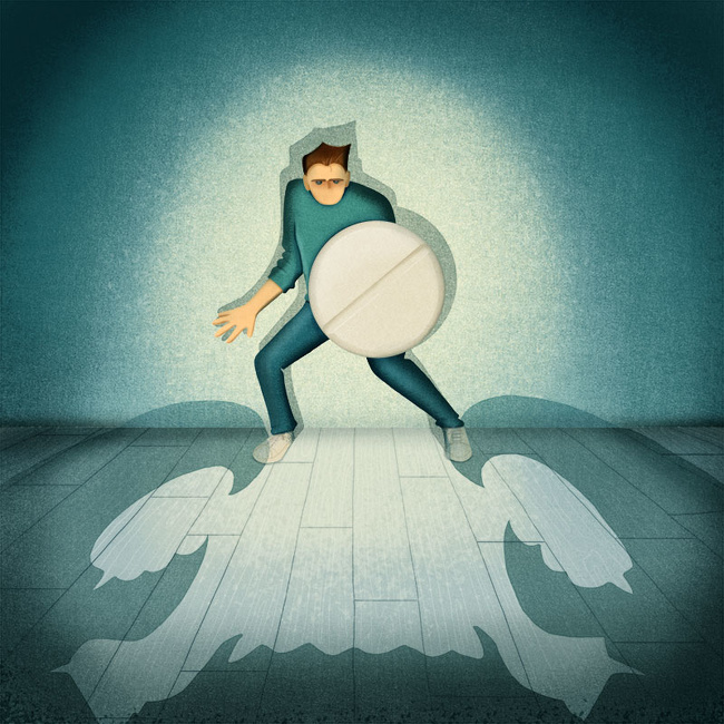Ілюстрація зроблена для статті про аспірин і його несподіваний ефект проти раку у колонці про дослідження в сфері здоров'я журналу Scientific American.