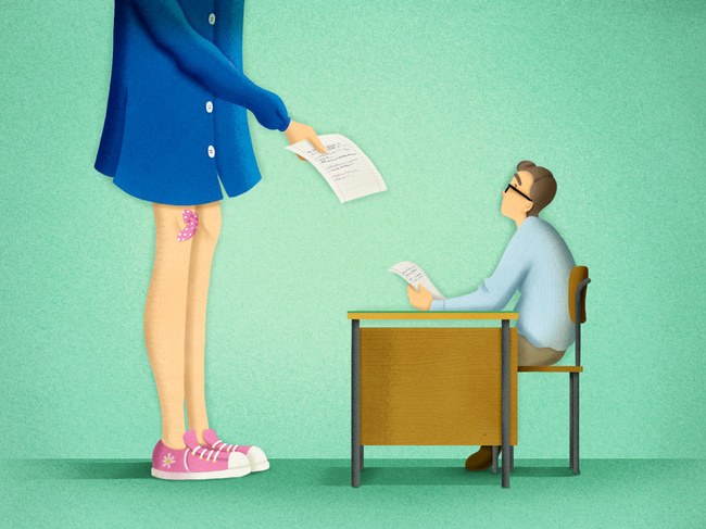 Ілюстрація для Futura, вісника газети Corriere della Sera, про «занадто» свідомому вчителя, який не приймає той факт, що його учні ростуть.