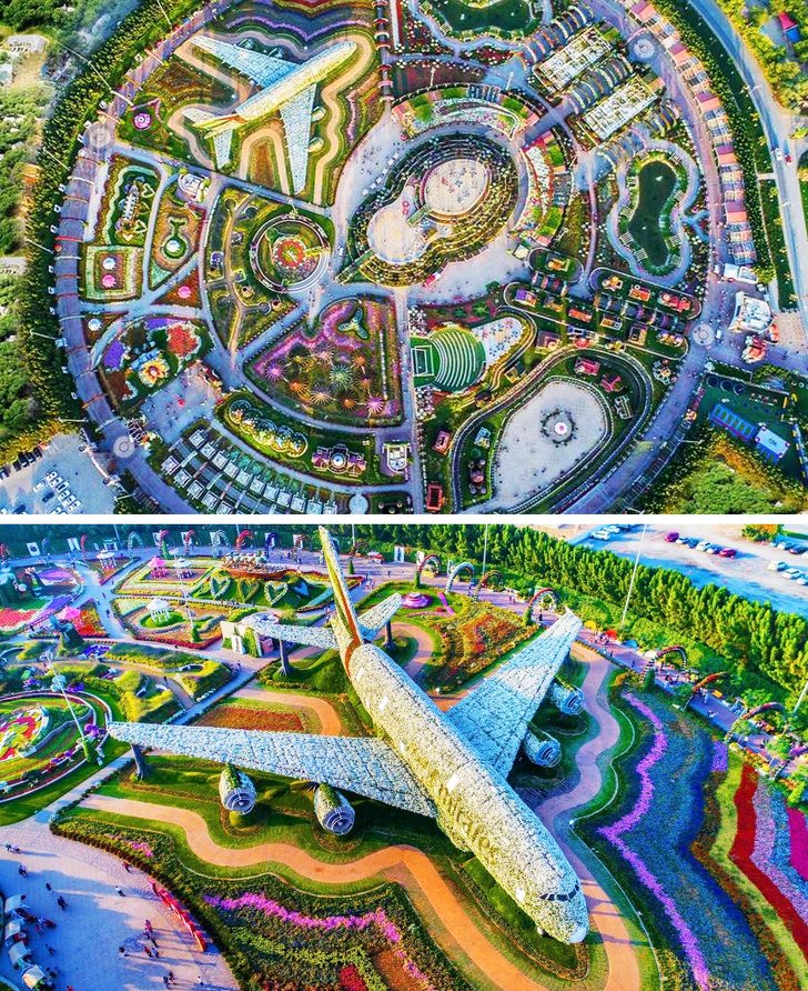 Дивно, але найбільший квітковий парк на Землі виник не в родючому регіоні, а в оазі серед пустелі. Він створений кращими дизайнерами США і Європи, тут вдалося виростити рослини, які ніколи раніше не зустрічалися в Еміратах. Буйне цвітіння в рукотворному раю підтримує система крапельного зрошення з каналізаційного каналу.
