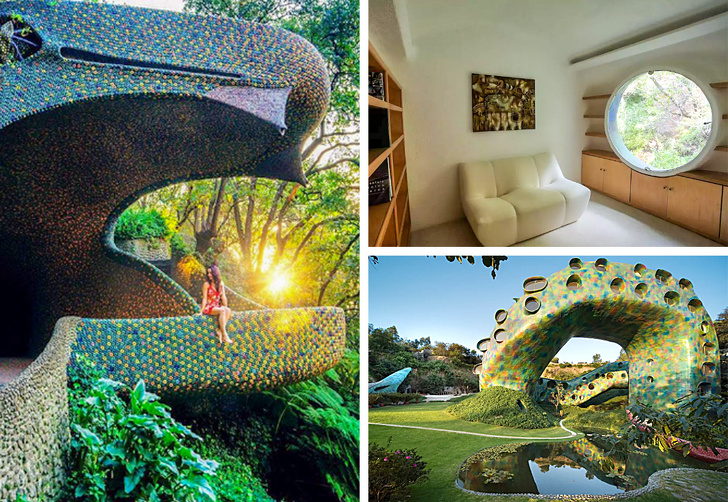 У давні часи птицеподобный змій Кетцалькоатль був одним з головних божеств ацтеків. Тому своє надзвичайне і масштабне спорудження дизайнер Хав'єр Сеносиан назвав в його честь. На 5 тис. кв. м серед пагорбів і тінистих дерев побудований комплекс з 10 мальовничих будинків у концепції «органічна архітектура». Цей «Будинок-змія» іноді ширяє в повітрі, а деколи немов заривається в землю, де в колишніх печерах і лабіринтах створені затишні кімнати для мандрівників.