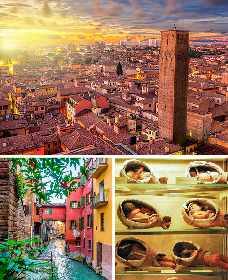 Болонья — калейдоскоп вражень по-італійськи. Не дарма її ще називають столицею наук і кулінарії. Романтичний канал на Віа Агусто, п'ятий за величиною європейський храм — базиліка Сан-Петроніо, Музей іграшкових солдатиків на віллі Маццакорати, будинок-музей великого співака Лучано Паваротті, Музей «Феррарі», а ще школа акушерства в Палаццо Поджі, де зберігаються фігури з воску, детально знайомлять з процесом пологів.