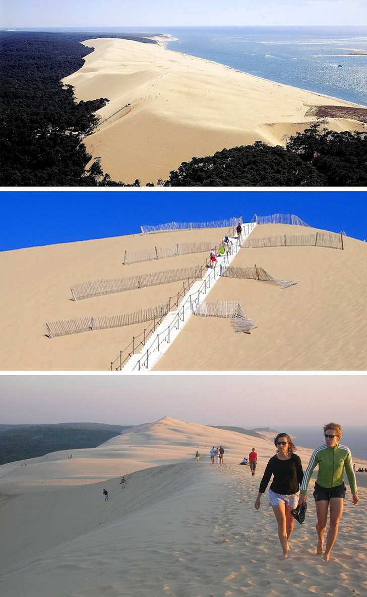 Цього гігантського шедевру природи близько 4 тис. років. Якщо ви опинитеся на південно-заході Франції поблизу Аркашона, зможете насолодитися морським пейзажем і в той же час відчути себе в пустелі. Як же з'явилася ця дюна? Кажуть, мільйони років тому вітер і вода точили хребти Піренеїв, перетворюючи їх в пісок, який ріки несли в море, а припливи повертали на берег, де шлях йому перекривали лісу.
