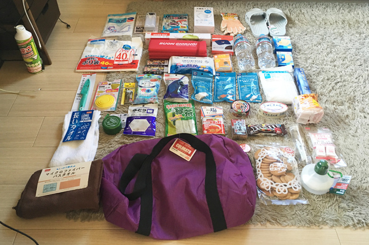Якщо ваше відвідування цієї країни затягнулося на кілька місяців, то варто подумати про свою готовність до стихійних лих начебто тайфунів або землетрусів. У багатьох японців на цей випадок зібраний набір речей першої необхідності, на зразок того, що ви бачите на фото.