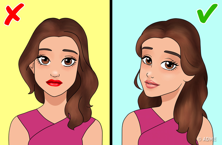По-перше, надто яскравий макіяж на першому побаченні виглядає неприродно, лякаюче і відштовхуюче. А по-друге, він може доставити масу неприємностей. Стійкі матові помади часто ідеально тримаються на протязі всього дня, але безслідно зникають при зіткненні з їжею і напоями, залишаючи безглуздий яскравий контур, від якого довго і болісно доведеться позбавлятися в дамській кімнаті.