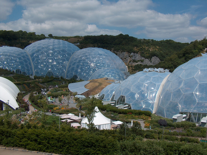 Оранжерея накрита кількома прозорими геодезичними куполами, які нагадують гігантські мильні бульбашки. Під одним куполом представлена багата тропічна флора, під іншим — середземноморська, а третя частина комплексу, з менш химерними рослинами, розташована під відкритим небом.
