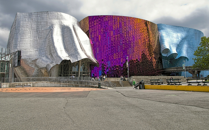 Американський музей EMP заснував співзасновник компанії «Майкрософт» Пол Аллен у 2000 році. Спочатку Підлогу хотів створити Музей Джимі Хендрікса, але проект трансформувався у великій інтерактивний музей музики. Натхненням для незвичайної форми музею послужила гітара Хендрікса, яку він розбивав після кожного концерту. Знаменитий архітектор Френк Гері вдався до комп'ютерного дизайну при проектуванні цього хвилеподібного будівлі, яке ще називають «якимось морським чудовиськом, яке виповзло на берег». Споруда з бетону викладено безліччю фрагментів з нержавіючої сталі та алюмінію срібного, золотого, червоного, синього і рожевого відтінків.