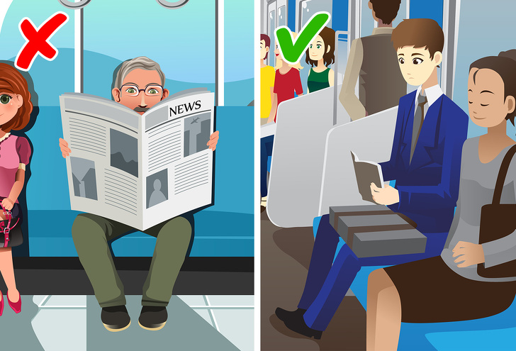 20+ правил етикету в громадському транспорті, про які варто пам'ятати всім вихованим пасажирам (А ви правильно читаєте газети в метро?)