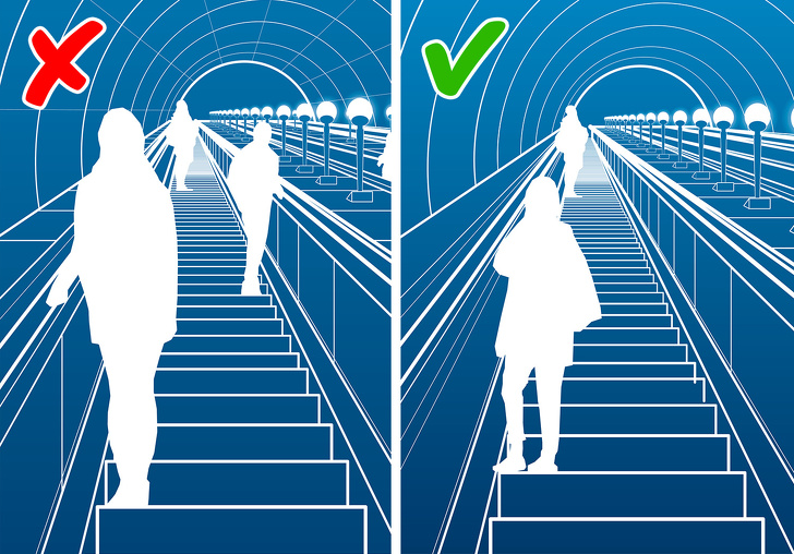 - Золоте правило ескалатора: стояти праворуч, обходити — зліва.
