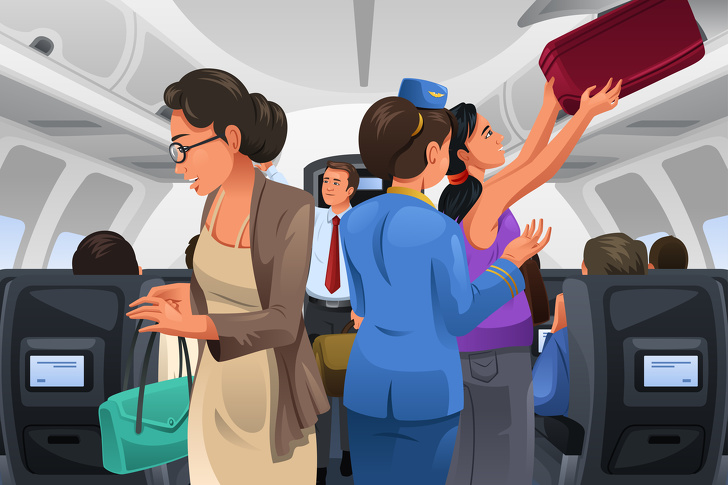 - Запропонувавши попутникові занести/розмістити його багаж, ви не тільки розташуйте до себе сусіда по кріслу, але і істотно скоротите час посадки пасажирів. Не будемо нагадувати, що допомогти літнім людям, жінкам в положенні і людям з обмеженими фізичними можливостями — обов'язок будь-якого поважаючого себе людину.