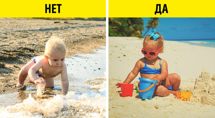 Якщо ви відпочиваєте з малюком, не пускайте його на лінію прибою, де вода найбільше забруднена. Краще відверніть його «копалками» в піску або надувним басейном, а воду краще набрати на глибині в баклажку.